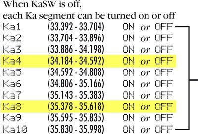 También dispone por la tanto del tramos acotado para los radares de 35,5GHz como podemos ver en la imagen.