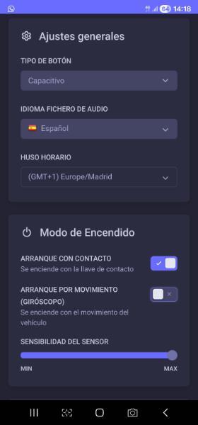 15. No te aparece porque tienes activado el arranque por contacto y por giroscopo. Si está activo el arranque por giroscopo, la opción del "centinela" está desactivada puesto que un movimiento o vibración con el motor apagado (justo lo que controla el centinela) enciende el equipo. Arranque por contacto = Centinela comprueba si hay movimiento o vibración con el motor apagado. Puedes recibir alerta de motor arrancado y/o de movimiento no autorizado (con motor OFF). Arranque por giróscopo = Centinela se encarga de encender el equipo. Puedes recibir alerta de coche en marcha. Un saludo