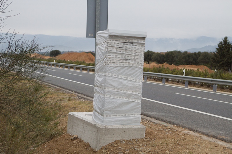 A300 Publicado 23 de Julio del 2008 Autor Reportar Publicado 23 de Julio del 2008 Aquí van las fotos de la base de cemento de la C-37 Km 3.1 en sentido hacia Alcover (cortesía de Alfa 156). En las fotos podemos contemplar dos bases de cemento...la de la caja y la del poste que albergará la cámara de vigilancia. Ese tipo de peanas de cemento rectangulares es lo que están instalando, junto con las otras peanas cuadradas para la cámara de vigilancia. Saludos. Citar