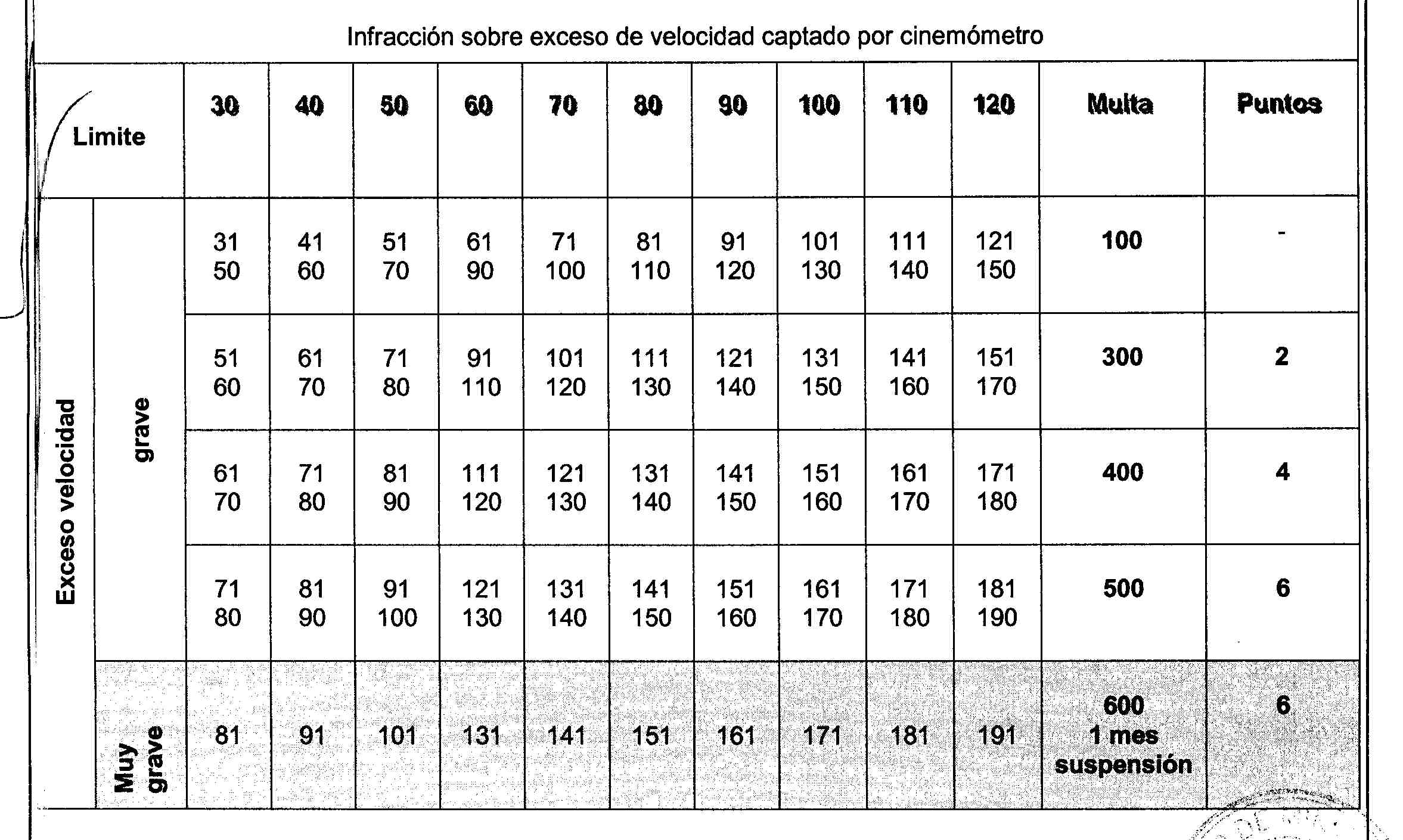 Según el nuevo proyecto de ley (http://www.elperiodico.com/vivo/recursos/pdf/seguridadvial.asp) cambian las velocidades a las que pueden multar, por ejemplo, en autopista hay multa de 100 € de 121 a 150 km/h y sólo quitan puntos por encima de 151. Se acabó lo de apurar hasta los 132 km/h. ¿sabéis si va a ser así?, ¿y el error del 10 % de ahora?<p><a href="https://www.todoradares.com/foro/uploads/monthly_2008_12/tabla.jpg.41227c561456ce8ad4a9e4239039ccca.jpg" class="ipsAttachLink ipsAttachLink_image"><img data-fileid="2525" src="https://www.todoradares.com/foro/uploads/monthly_2008_12/tabla.jpg.41227c561456ce8ad4a9e4239039ccca.jpg" class="ipsImage ipsImage_thumbnailed" alt=""></a></p>