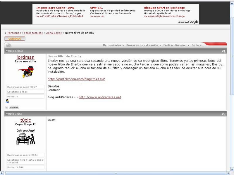 txavi Publicado 30 de Marzo del 2009 Reportar Publicado 30 de Marzo del 2009 Pues yo posteo ahí y nunca hble de radares. Bueno sí, a un chico que me pregunto para que sevía una cajita de LR Remote.Salu2 Cadacual es cadacual, Berki pondre un privado al webonmaster de forocepos (que es amigo) para q lo baneen del foro:) Claro...tirando de privilegios, no? Citar