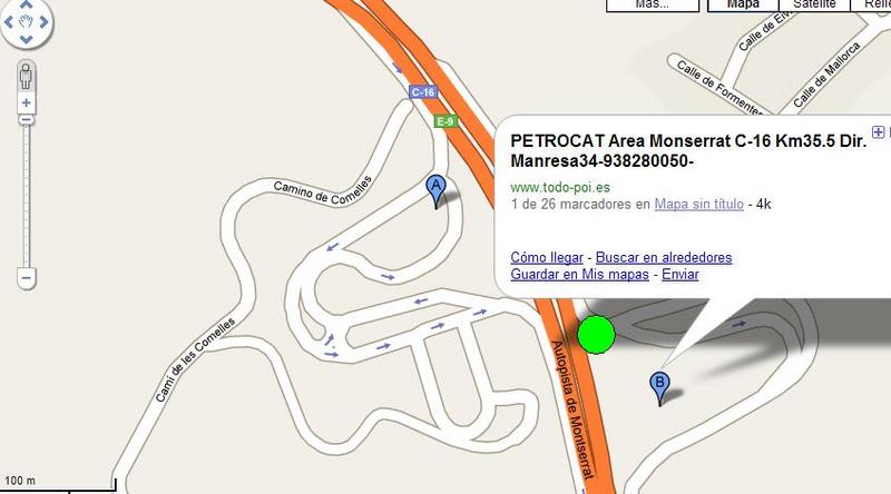 Pues esta tarde 19:30h aprox ,mientras bajaba de currar de Puigcerdà por los tuneles del Cadí, pues en el Km35,7 dir. Andorra / La Seu D´Urgell, justo en el cebrado de la salida del Area de Servicio estaba el Señor haciendo unos fotillos...La gasolinera del area de servcio de Petrocat,es justo despues de la salida de Olesa de Montserrat.... Se veia bastante bien.