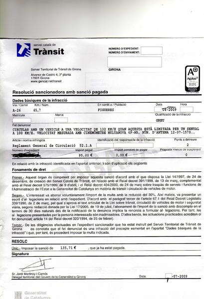 Hace días expuse el caso de que me habían pillado a velocidad de crucero "grave". Pagué con descuento y hice el recurso correspondiente. Algunos me animasteis a que lo hiciera para intentar llegar a julio "virgen" con mis doce puntos. Me ha llegado la resolución del recurso presentado y resumiendo me dicen que cómo ya he pagado he perdido la oportunidad de alegar nada. Adjunto escaneo de recurso tapando lo indispensable.