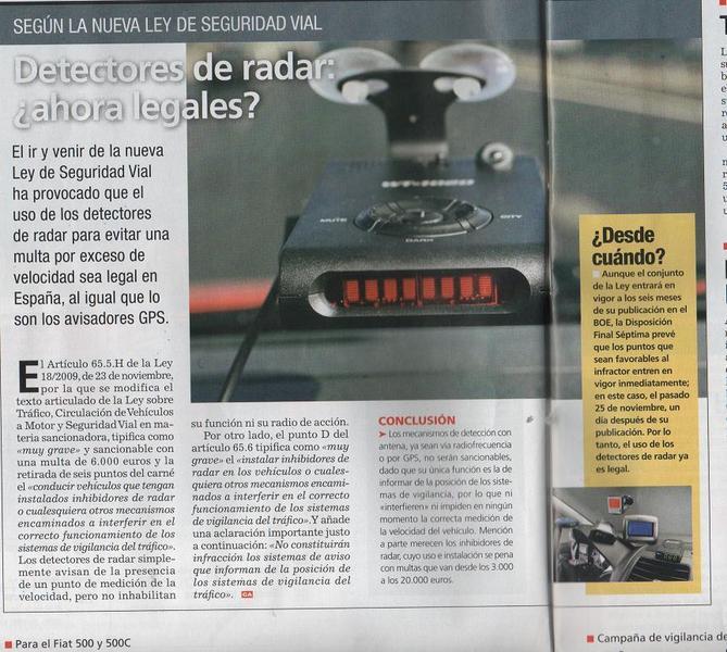 CACATUA-ESPAÑA Publicado 31 de Octubre del 2009 Reportar Publicado 31 de Octubre del 2009 (editado) AHORA SI... ¡¡ PUEDE QUE ESTEN LEGALIZADOS LOS DETECTORES DE RADAR !! (no los inhibidores) En el mes de junio el Congreso de los Diputados aprobó el Proyecto de Ley y lo envió al Senado para su aprobación. El Senado ha introducido una serie de modificaciones ("enmiendas") y lo ha devuelto al Congreso para su aprobación definitiva. El 29/10/2009 el Congreso discutió y votó las enmiendas del Senado y... entre las aprobadas... están las que se refieren al Art. 65.5.h) y al Art.65.6.d) ¡¡ BIEN POR EL SENADO!! La redacción actual sigue siendo oscura (no dice "se legalizan los detectores de radar", pero eso nunca lo iba a decir una Ley de Tráfico) pero cambia el término "instrumentos encaminados a eludir la vigilancia" por "mecanismos encaminados a interferir en el funcionamiento de los sistemas de vigilancia". Este pequeño cambio supone una GRAN diferencia Y un detector de radar ES un aparatito encaminado a eludir la vigilancia (redacción inicial del Congreso), pero NO ES un aparatito que interfiera en el funcionamiento de los sistemas de vigilancia (redacción propuesta por el Senado y finalmente aprobada por el Congreso). Art. 65.5.h) Infracciones muy graves REDACCION ANTERIOR (enviada por el Congreso al Senado): h) Conducir vehículos que tengan instalados inhibidores de radar o cualesquiera otros mecanismos o instrumentos encaminados a eludir la vigilancia del tráfico. REDACCION ACTUAL (enmienda del Senado que finalmente ha aprobado el Congreso) h) Conducir vehículos que tengan instalados inhibidores de radar o cualesquiera otros mecanismos encaminados a interferir en el correcto funcionamiento de los sistemas de vigilancia del tráfico. Art. 65.6.d) Otras infracciones muy graves REDACCION ANTERIOR (enviada por el Congreso al Senado): d) Instalar sistemas de detección de radar en los vehículos o cualesquiera otros mecanismos encaminados a eludir los sistemas de vigilancia. REDACCION ACTUAL (enmienda del Senado que finalmente ha aprobado el Congreso) d) Instalar inhibidores de radar en los vehículos o cualesquiera otros mecanismos encaminados a interferir en el correcto funcionamiento de los sistemas de vigilancia del tráfico. No constituirán infracción los sistemas de aviso que informan de la posición de los sistemas de vigilancia del tráfico. Creo que el matiz es importante. No es lo mismo "eludir los sistemas de vigilancia" (redacción anterior) que "interferir en el correcto funcionamiento de los sistemas de vigilancia del tráfico" (redacción actual). Además, aclara la norma que "no constituirán infracción los sistemas de aviso que informan de la posición de los sistemas de vigilancia del tráfico". ESTO YA HA SIDO APROBADO y ese texto va directo al BOE con esa redacción (el texto que pongo como "redacción actual"). ASI QUE... ¡¡ENHORABUENA A TODOS !! Desde que se publique en el BOE, SEIS MESES !! :party: Por si algún jurista quiere verificarlo, a continuación pongo los enlaces al Boletín Oficial del Congreso (texto inicial y enmiendas del Senado) y al Diario de Sesiones del Congreso, con el texto del debate y de la votación. He pasado un mal rato... cuando empecé a leer la votación se me puso el corazón en un puño... porque empezaron las votaciones rechazando todas las enmiendas... pero finalmente han aprobado la que más [nos] interesa. Enlace al texto aprobado por el Senado con sus enmiendas: http://www.congreso.es/public_oficiales/L9/CONG/BOCG/A/A_012-13.PDF Enlace al debate final en el Congreso (pag. 15 a 21) el 29/10/2009 y a la votación con la aprobación definitiva (pag. 63-64): http://www.congreso.es/public_oficiales/L9/CONG/DS/PL/PL_118.PDF Editado 31 de Octubre del 2009 por CACATUA-ESPAÑA No funcionaban los enlaces web Citar