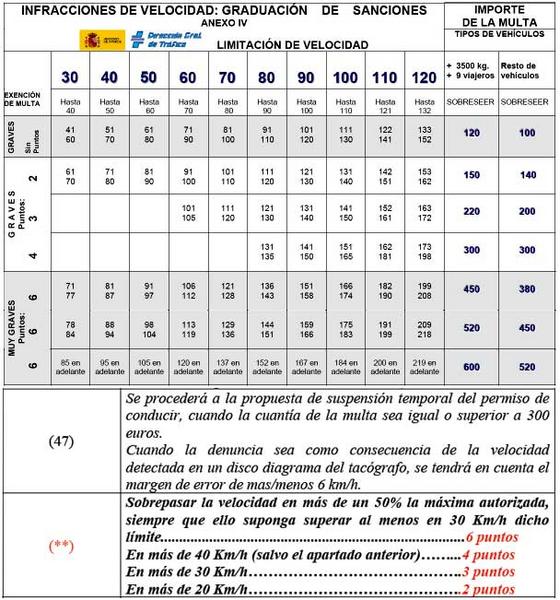 Copito Publicado 5 de Abril del 2010 Reportar Publicado 5 de Abril del 2010 ¿Al final en que quedó la cosa?A mi madre la han cazado a 166 en límite de 120 que con la nueva ley serían 2 puntos y 300 euros con posibilidad del 50% de dto. (es decir se quedaría en 150 euros) y con la antigua son 3 puntos y 200 euros que con el 30% de dto. se quedarían en 140 euros. Claramente es mejor el caso de la nueva ley que aunque son 10 euros más de multa con el pronto pago, es un punto menos que te quitan... De momento sólo ha recibido la carta solicitando identifique al conductor sin poner ni importes, ni puntos ni descuentos... Saludos. P.D.: adjunto las tablas de la antigua y de la nueva ley Estos cuasdro que haqs puesto no son ciertos, la nuevo ley a partir de 121 te cazara, y asi sucesivamente, la tengo aqui en la mano. Citar