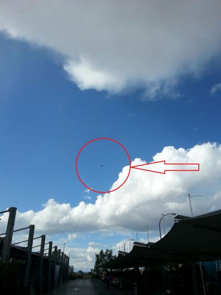 Aunque la foto apenas se aprecía debido a lo miope de la camara del móvil, pero a simple vista se le distingue perfectamente, volaba muy despacío a no más de 90 o 100 Km/h y a la derecha de la carretera.