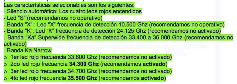 mondeo Publicado 1 de Junio del 2015 Reportar Publicado 1 de Junio del 2015 Muchas gracias compañero!Mi duda era que en la centralita lleva poder activar la banda K, aunque se lleva desactivada porque si no recuerdo mal daba falsas detecciones ya que todas las puertas de apertura automática en las gasolineras y establecimientos funcionan en esa frecuencia... Gracias de nuevo Saludos cordiales Me autocito ya que al ver el manual del Beltronics 975R de esta misma web pone lo siguiente: Saludos cordiales<p><a href="https://www.todoradares.com/foro/uploads/monthly_2015_06/56fd08bec2a41_Capturadepantalla2015-06-01alas11.10.13.jpg.0e7a3d26d14c4d8bc43dbbedb0195004.jpg" class="ipsAttachLink ipsAttachLink_image"><img data-fileid="5052" src="https://www.todoradares.com/foro/uploads/monthly_2015_06/56fd08bec2a41_Capturadepantalla2015-06-01alas11.10.13.jpg.0e7a3d26d14c4d8bc43dbbedb0195004.jpg" class="ipsImage ipsImage_thumbnailed" alt=""></a></p> Citar