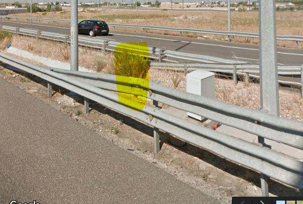 Lo he indicado en la foto, en amarillo donde se ha instalado un nuevo radar que no sé si está en funcionamiento. La foto (captura de google) está hecha dirección Sur, a la altura más o menos del km 38 y la vista de la foto es pasado el radar, es decir, como si se hubiera tomado por la ventana de atrás nada más pasarlo.