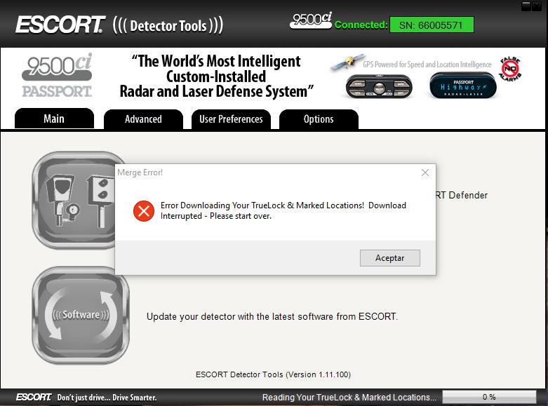 elcoyan Publicado 14 de Marzo del 2017 Reportar Publicado 14 de Marzo del 2017 Hola Tengo el Escort 9500CI Internacional MTR y estoy intentando actualizar la base de datos con el ESCORT Detector Tools pero no hay manera,me salta esta ventana cada vez que lo intento,me gustaría que alguien me ayude ya que soy nuevo en este tema,os dejo la Captura que me sale Gracias Citar