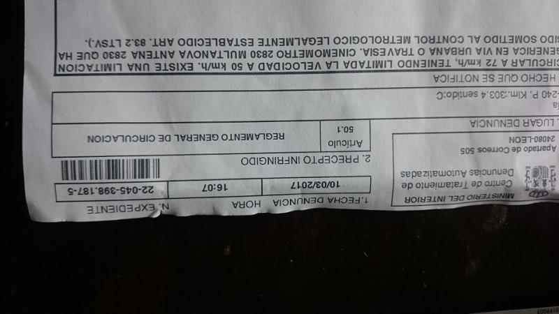 juan alberto Publicado 25 de Marzo del 2017 Reportar Publicado 25 de Marzo del 2017 Hola! Tengo una multa recibida en correo ordinario, viene del centro de tratamiento de denuncias automatizadas de León Me dice que tengo un plazo de 20 días para identificar al conductor. Hecho notificado: circular a 72km/h teniendo limitada a 50km/h Estoy perdido, qué tengo que hacer? He oido algo de márgenes de error del multanova multanova 6F-MR (foto hecha desde un coche camuflado), es aplicable a mi caso? Gracias por la ayuda!!!!1 Citar