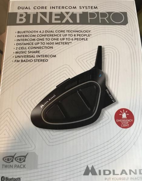 Vendo una unidad completa del intercomunicador Midland BT Next Pro con todos sus accesorios. Compré el pack twin para compartirlo con un amigo pero al final se ha echado atrás.