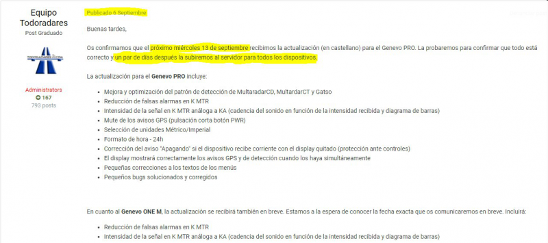 abergueiro Publicado 24 de Septiembre del 2017 Reportar Publicado 24 de Septiembre del 2017 Cuando uno pertenece a la competencia como eres tu y solo entra para liarla y decir falsedades vs un equipo sin tener ningun fundamento ya que tanto el pro como el one funcionan correctamente vs los multaradarcd detectandolo en todos los radares salvo en 9algunos casos en el que el radar esta situado en posiciones dificiles donde las distancias son mas justas o algun radar fijo que se encuentra fuera de emision cosa que otros equipos ni lo detectan ...... Aqui si algo no funciona te puedes quejar y lo intentamos arreglar y no se banea a nadie pero si vienes a trolear ya sabes lo que te va a pasar .....muchas gracias Enviado desde mi SM-G950F mediante Tapatalk Citar