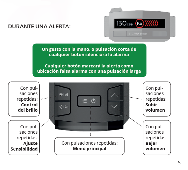 Marcogenev Publicado 12 de Enero del 2020 Reportar Publicado 12 de Enero del 2020 hace 59 minutos, Equipo Todoradares dijo: La configuración del sensor depende de la velocidad a la que muevas la mano. Si la agitas rápido tienes que seleccionar el ajuste "Rápido". No entiendo muy bien el fallo que dices que tiene. Si el equipo detecta un radar, con pasar la mano o pulsar un botón (pulsación corta) lo pasas a mute. Si mantienes pulsado cualquier botón, lo marcas como falsa alarma y si pulsas varias veces el botón "Menú" entras al menú por lo que no entiendo muy bien tu comentario: Buenos dias, No funciona si presiona el botón "menú" varias veces o la posibilidad de apagarlo completamente con el botón principal. El resto funciona. >> Control del brillo >> Ajustar sensibilidad >> Someterse y bajar volumen. buena tarde