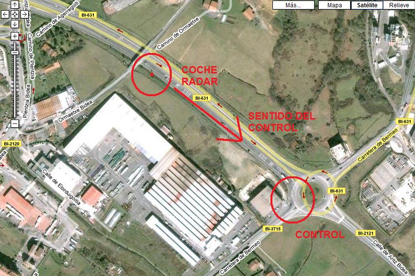 andreas Publicado 24 de Junio del 2008 Reportar Publicado 24 de Junio del 2008 Hola de nuevo: Esta mañana he podido ver a la Ertzantza preparar de nuevo la parafernalia para hacer un poco de "caja" antes del verano, me extrañaba que no estuvieran en los sitios de siempre ahora que hay campaña contra la velocidad y lo que pasa es que aún no habían terminado de montar el equipo. Al grano, he visto el control para detener a los vehículos en la rotonda de Mungia al finalizar la circunvalación en sentido Bermeo. El coche no lo he podido ver con seguridad pero me parece que era un sedán gris, posiblemente un Daewoo, en todo caso lo más seguro es que lo ubiquen donde siempre, en el arcén derecho de la BI 631, sentido Bermeo justo al pasar el puente. En ese tramo la velocidad máxima permitida baja de 120 a 100 y luego a 70, por lo que andar al loro. Adjunto un croquis del asunto. Un saludo<p><a href="https://www.todoradares.com/foro/uploads/monthly_2008_06/RADAR_BERMEO.jpg.d3df00e8bca79343f929613ff01580ad.jpg" class="ipsAttachLink ipsAttachLink_image"><img data-fileid="2276" src="https://www.todoradares.com/foro/uploads/monthly_2008_06/RADAR_BERMEO.jpg.d3df00e8bca79343f929613ff01580ad.jpg" class="ipsImage ipsImage_thumbnailed" alt=""></a></p> Citar