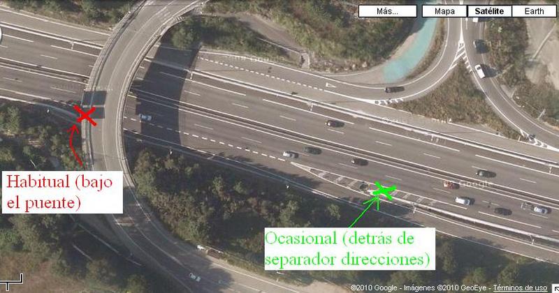 Patoaparato Publicado 6 de Septiembre del 2010 Reportar Publicado 6 de Septiembre del 2010 (editado) En Tomiño, PO-552, Astra de toda la vida, intersección con el acceso a San Campio de Lonxe. Limitación desde hace unosmeses: 50 km/h. Sí, es por nuestra seguridad... Además, apostados detrás de un contenedor de la basura, os aseguro que no los vi hasta que estaba encima. Hora: en torno a las 08:30h. Día: 22/06/2010. La diferencia es que, de un tiempo a esta parte, también se están poniendo en dirección a A Guarda (antes se ponían mirando en dirección a Tui y del lado derecho exclusivamente), aunque luego retraten a todo hijo de vecino. Y, como son muy cariñosos, ese día tenían predilección por parar a los portugueses, porque ven que luego no hacen caja. De hecho, en este caso el coche miraba hacia A Guarda y paraban a los que iban en dirección a Tui. Para los que no lo sepan, se colocan en un tramo situado entre el puente internacional de Goián y un par de gasolineras de CEPSA. Y todos los días hay decenas, pero los fines de semana hay cientos de conductores portugueses que cruzan por ese puente para repostar en esas gasolineras (la diferencia de precio mete miedo). Y, hasta ahora, no hacían caja. Ver archivos adjuntos. En la foto aérea, justo delante de la nave con techo blanco, por fuera del arcén. PD: me he bajado la mierda del Google Earth, ¡pero no lo instala! ¿Hay alguna otra forma de ver las coordenadas y colgarlas? Un saludo<p><a href="https://www.todoradares.com/foro/uploads/monthly_2010_09/P1130013r.JPG.b2497b761b6dd55f2c359f10f2e739bf.JPG" class="ipsAttachLink ipsAttachLink_image"><img data-fileid="3203" src="https://www.todoradares.com/foro/uploads/monthly_2010_09/P1130013r.JPG.b2497b761b6dd55f2c359f10f2e739bf.JPG" class="ipsImage ipsImage_thumbnailed" alt=""></a></p><p><a href="https://www.todoradares.com/foro/uploads/monthly_2010_09/P1130014r.JPG.afc1ef6046b5d26267f9d3471e51605e.JPG" class="ipsAttachLink ipsAttachLink_image"><img data-fileid="3204" src="https://www.todoradares.com/foro/uploads/monthly_2010_09/P1130014r.JPG.afc1ef6046b5d26267f9d3471e51605e.JPG" class="ipsImage ipsImage_thumbnailed" alt=""></a></p><p><a href="https://www.todoradares.com/foro/uploads/monthly_2010_09/P1130020r.JPG.92aa894b6f1b0b5f08a6310904e60878.JPG" class="ipsAttachLink ipsAttachLink_image"><img data-fileid="3205" src="https://www.todoradares.com/foro/uploads/monthly_2010_09/P1130020r.JPG.92aa894b6f1b0b5f08a6310904e60878.JPG" class="ipsImage ipsImage_thumbnailed" alt=""></a></p><p><a href="https://www.todoradares.com/foro/uploads/monthly_2010_09/P1130025r.JPG.79efa95c874aa8352280e771892a665f.JPG" class="ipsAttachLink ipsAttachLink_image"><img data-fileid="3206" src="https://www.todoradares.com/foro/uploads/monthly_2010_09/P1130025r.JPG.79efa95c874aa8352280e771892a665f.JPG" class="ipsImage ipsImage_thumbnailed" alt=""></a></p><p><a href="https://www.todoradares.com/foro/uploads/monthly_2010_09/56fd0789ae7f7_PO-552SanCampio.jpg.5b387e62aacf636e3134e4d28f58f1e4.jpg" class="ipsAttachLink ipsAttachLink_image"><img data-fileid="3207" src="https://www.todoradares.com/foro/uploads/monthly_2010_09/56fd0789ae7f7_PO-552SanCampio.jpg.5b387e62aacf636e3134e4d28f58f1e4.jpg" class="ipsImage ipsImage_thumbnailed" alt=""></a></p> Editado 6 de Septiembre del 2010 por Patoaparato Citar