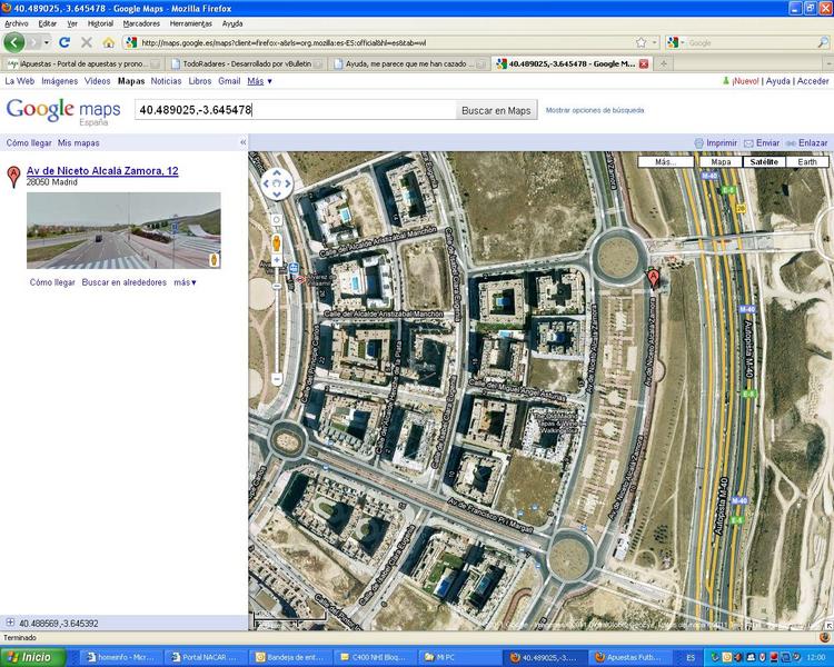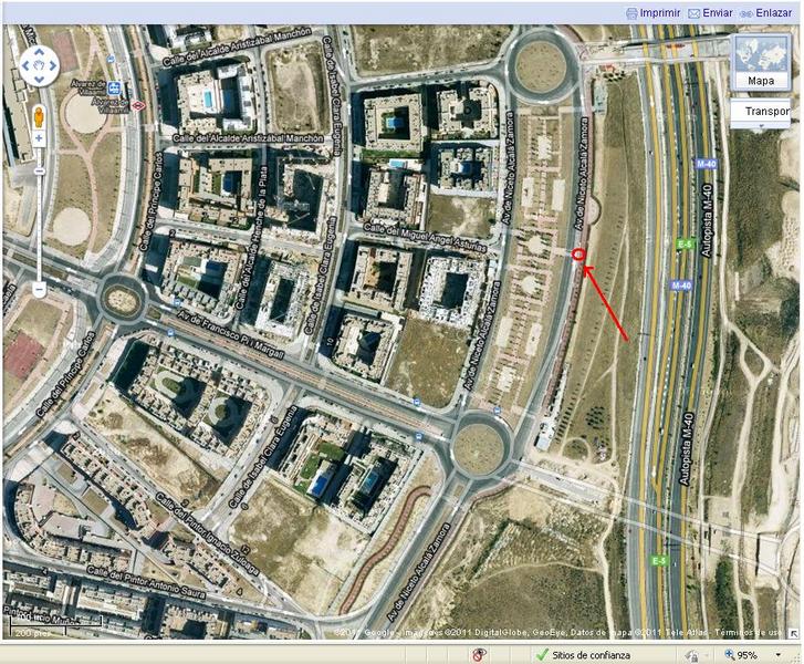 Sistema Publicado 11 de Marzo del 2011 Reportar Publicado 11 de Marzo del 2011 Viernes pasado a alas 8:45am en la M501 sentido Villanueva de la Cañada a la altura del desvió de Boadilla del Monte Fiat Croma con Multanova aquí exactamente (Google Earth):40°21'42.28"N 3°56'6.04"O Pero eso es en Villaviciosa de Odón, no? Esta mañana a las 8:30 Megane gris break con multanova en Valdemorillo (M600 ver foto) antes pasado la rotonda grande que viene de El Escorial y de Colmenarejo. Ya esta fichado en los POIS ya que es posición habitual en ambos márgenes de la carretera.Lo curioso de hoy es que CAZABAN DE FRENTE, puesto que el coche estaba en el carril derecho sentido El Escorial pero estaban recentando en la rotonda de las Shell de Villanuva de la Cañada... Saludos! El que yo quería eliminar! :flute: Pero se ponen pasado el taller hacia la rotonda, no? Citar