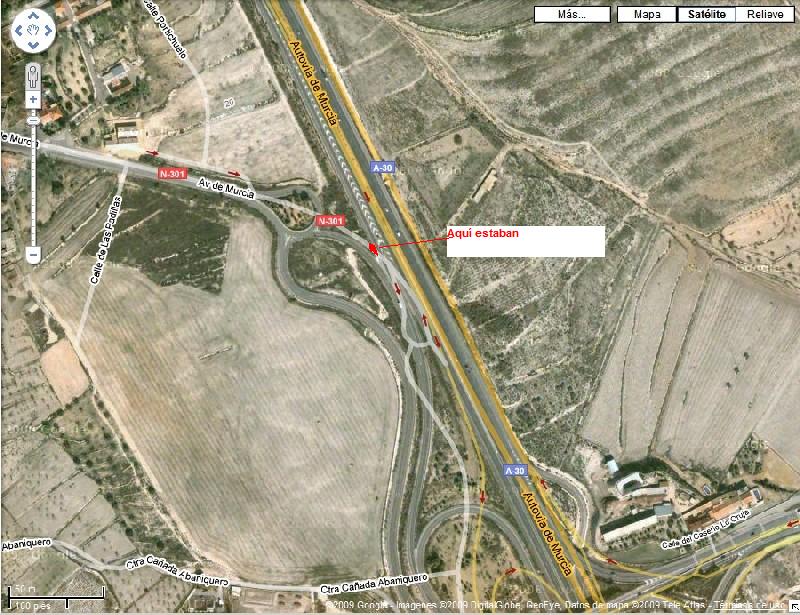 Poooh Publicado 19 de Enero del 2009 Reportar Publicado 19 de Enero del 2009 (editado) El pasado Sábado 17/01/2009 estaba el Opel Astra azul marino parado en la bajada del Puerto de La Cadena dirección Cartagena. Estaba en el desvío hacia San Javier. Eran las 21:45 y estaba completamente de noche!!! Habían puesto UN triángulo de señalización y estaban con los warnings encendidos, sin más luces que esas. Las coordenadas son: 37°52'7.54"N 1° 7'26.78"O Cuidado porque creo que la velocidad del desvío ese es de 80Km/h y nadie pasa a menos de 100Km/h!!! Por otro lado, hoy he vuelto a ver el 406 azul marino de los locales de Murcia en la Carretera de Beniaján. Es la tercera vez en tres semanas que lo veo. ¡OJO! ¡Saludetes!<p><a href="https://www.todoradares.com/foro/uploads/monthly_2009_01/314.jpg.6a5efb4b0f6b8d643c1224dfbd2d9238.jpg" class="ipsAttachLink ipsAttachLink_image"><img data-fileid="2554" src="https://www.todoradares.com/foro/uploads/monthly_2009_01/314.jpg.6a5efb4b0f6b8d643c1224dfbd2d9238.jpg" class="ipsImage ipsImage_thumbnailed" alt=""></a></p> Editado 19 de Enero del 2009 por Poooh Añado captura de Google Maps. Citar