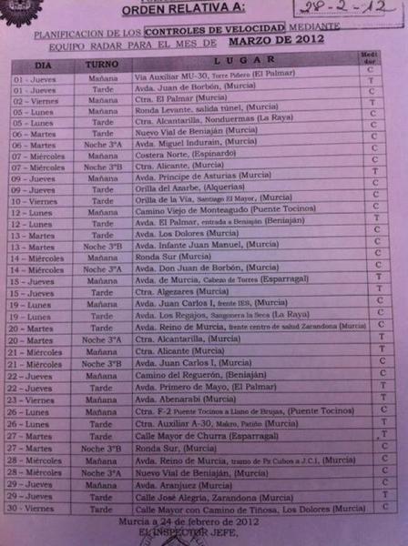 Jositoman Publicado 7 de Marzo del 2012 Reportar Publicado 7 de Marzo del 2012 De buena fuente me ha llegado esto. Posiciones de radar movil Policia Local en Murcia durante el mes de marzo. Atentos. Saludos.<p><a href="https://www.todoradares.com/foro/uploads/monthly_2012_03/doc20120306122434_pdf.2816dd100e36a437c2cfdd34267c2f9b" class="ipsAttachLink ipsAttachLink_image"><img data-fileid="3785" src="https://www.todoradares.com/foro/uploads/monthly_2012_03/doc20120306122434_pdf.2816dd100e36a437c2cfdd34267c2f9b" class="ipsImage ipsImage_thumbnailed" alt=""></a></p> doc20120306122434.pdf Citar