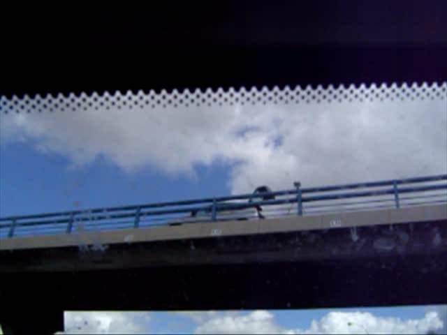 De verdad que están para subirse al puente con un buen tanque asegurado a todo riesgo y meterle un viaje al focus (parece un focus ¿no?). ¿Ponerse ahí es seguro? ¿es lícito, legal, etc?