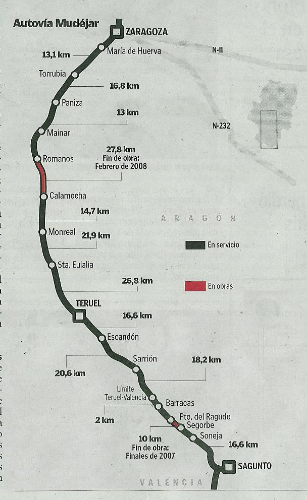 duralex Publicado 23 de Agosto del 2007 Reportar Publicado 23 de Agosto del 2007 es la A23 la autovia que dices o tambien la autovia MUDEJAR ,todavia no esta reflejada en los navegadores al completo ,segun las noticias que tengo estara totalmente operativa en 2008 pd yo voy con un BECKER con un adelanto del cd que saldra en breve al mercado y no me la marcaal completo. un saludo Citar