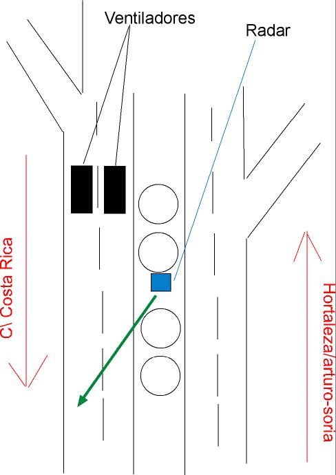 SKG Publicado 14 de Diciembre del 2005 Reportar Publicado 14 de Diciembre del 2005 Hola a todos,Me he pasado x el nuevo tunel de costa rica, eso de q solo estaba abierto un sentido x las obras unos webos... anda q no pasan coches, me he tenio q jugar el pellejo llendo x la miniacera . He ido a patita por lo tanto no sé si pita o no pita la copi ni en q frecuencia, el ratillo q he estado pa intentar hacer una foto decente (no lo he conseguido el puto flash no llega ) no he visto soltar ningun flash. Os hago un resumen sobre el radar: - Limitacion 50km/h (avisa en el luminoso) - Avisa en luminoso : "velocidad controlada por radar". - El radar apunta al sentido hacia la c\costa rica, es decir llendo de hortaleza o m-30 a entrar a la calle costa rica. En sentido contrario avisa de "velocidad controlada por radar" pero podeis estar trankilos. - El radar se encuentra en la fila de columnas central q separa los dos sentidos. - Según q entras de la curva de la m-30 al tunel, ves en el techo unos ventiladores enormes, poz a la cuarta columna está el radar (los cabrones ocultan el cajón detras de la columna y llendo en coche no lo ves hasta q estas a su altura) Os cuelgo unas fotikos las siguientes imagenes: - Luminoso de limite 50km/h - Luminoso : "velocidad controlada por radar". - Foto del radar (el puto flash no me llegaba y en modo nocturno las luces del tunel hacian cosas raras, os pongo está q es la unica ande se ve un poco el radar) - He realizado un crokis con el freehand asi en un pis pas pa q os hagais una idea del tunel. Salud y libertad Muy buena info, hace tiempo que no paso por allé, pero desde luego es un punto crítico. Saludos Citar