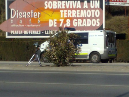 Tengo fotos del laser de Blanes "trabajando" a tope. Era el miércoles de esta semana que hemos finalizado. Sospeché cuando vi la furgoneta de la urbana estacionada en un lugar no habitual. Frenada y 360 grados en la siguiente rotonda y fotos al canto con el móvil. Pedí permiso a los agentes para retratar lo que ya retraté hace meses. Si supiera colgarlas lo haría pero el programa me indica que la foto "pesa demasiado" y va a ser que no. Tengo tres fotos y un video. Una ayudita y lo cuelgo.