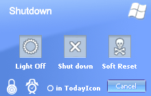 Esta chulo, puede apagar la pantalla, la PPC o hacer soft reset, puedes temporizar el apagado, ponerle una clave, etc.Tiene Skins configurables y una version especial para pantallas VGA.