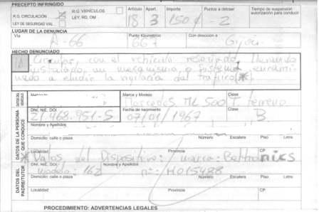 NOTA DE MODERADOR: editada foto de la denuncia ya que salia matrícula y datos del conductor.