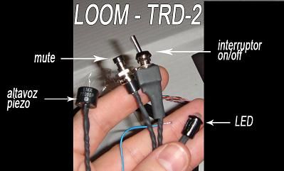 El loom consiste en un cable trenzado que acaba en un led luminoso para las alertas visuales, un pequeño altavoz piezo para las alertas acústicas, un botón de mute, y un interruptor de on/off. Esto será lo único visible en la cabina y se podrán instalar en cualquier rincón o hueco.