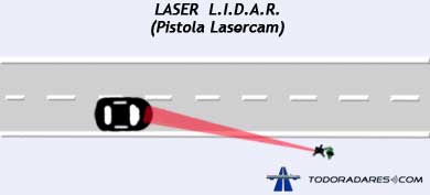 LIDAR significa «Light Detection And Ranging» y es la tecnología que emplean las pistolas láser de la policía para obtener la velocidad. Se diferencia del RADAR en que en lugar de usar ondas de radio utiliza un haz de luz láser infrarrojo de 33MHz de frecuencia y 904nm de longitud de onda.