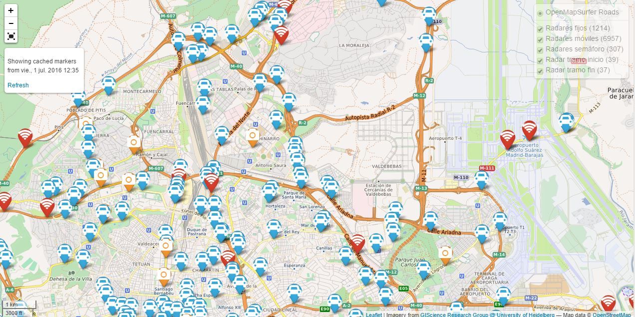 Hemos creado un mapa en el que poder consultar la posición y el límite de velocidad de todos los radares fijos, móviles, de semáforo y de tramo de España. Con la colaboración de ROBSER cuya base de datos (la mejor de España) ha sido cargada en el mapa queremos ayudarte a poder planificar mejor tu viaje y poder consultar los radares que podrás encontrarte en tu camino.