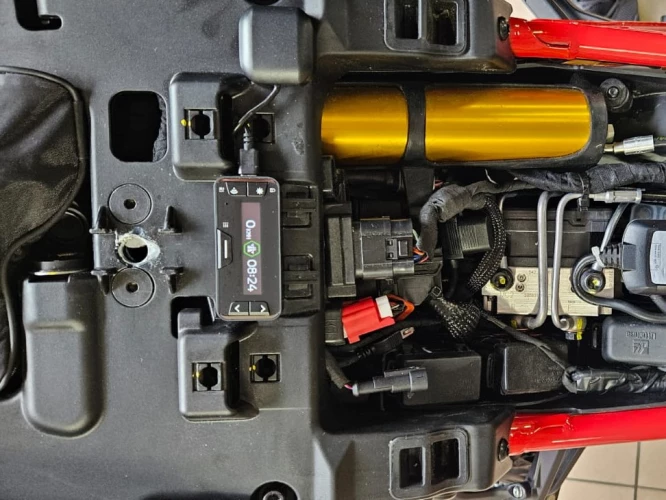 Estos dispositivos se montan de forma oculta en la moto y pueden incluir diferentes formas de notificación para el motorista: auriculares Bluetooth, luces LED instaladas en el manillar o incluso pequeños dispositivos vibratorios en el asiento o casco.