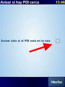 Mantenga deselecionada la casilla siguiente. Si selección el avisar solo si esta en la ruta, podrá saltarse algún radar si este no esta correctamente situado dentro de la carretera, de manera que no lo tomara que esta en la ruta y no le alertara. Esto puede ocurrir ya que a veces los radares no están exactamente situados.
