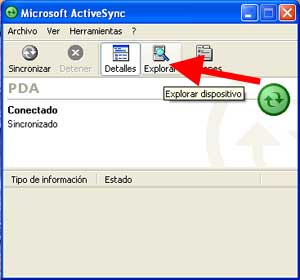 Pinchar en Explorar para acceder a las carpetas y archivos de la PDA.