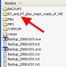 Seleccione la carpeta de los mapas del TomTom. En este caso es ES_and_PT_plus_mahor_roads_of_WE… pero puede ser «Iberia», o «Iberia_Plus-map», o «Iberia-map», etc.