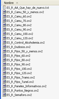El formato de POIs para TomTom es el fichero .ov2 como se puede ver en la imagen. Generalmente los POIs de radares suelen venir agrupados en categorías, según el origen de los POIs las clasificación puede ser distinta (por velocidades, por tipo, etc)