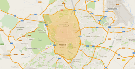 - Restricción de la circulación en el interior de la almendra central (área interior de la M‐30) del 50% de todos los vehículos
