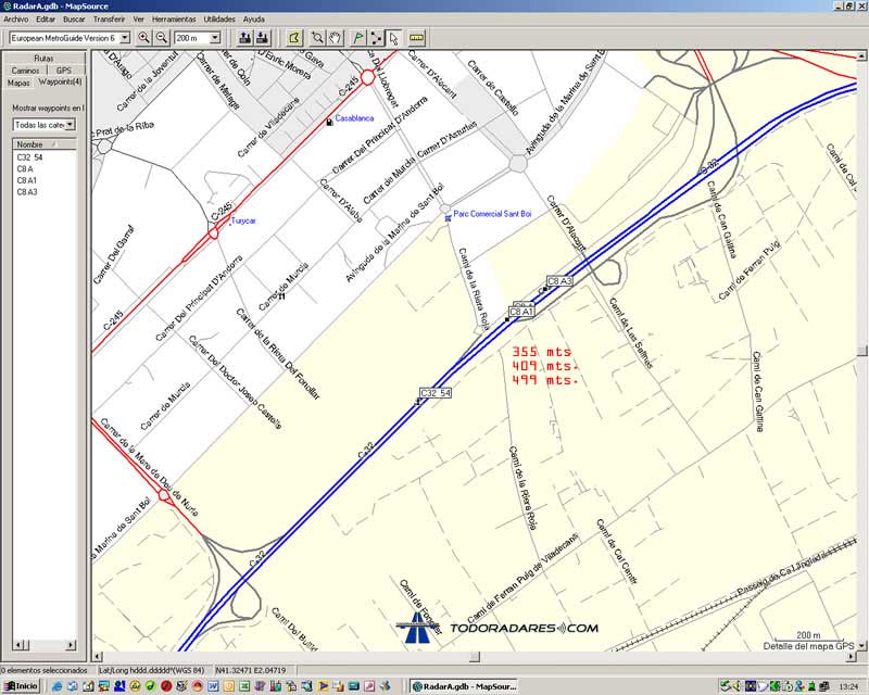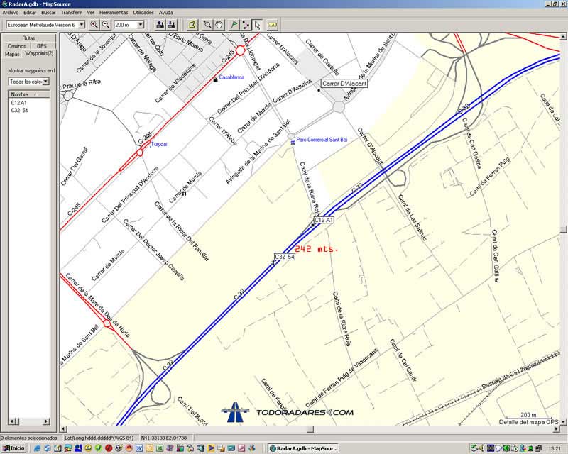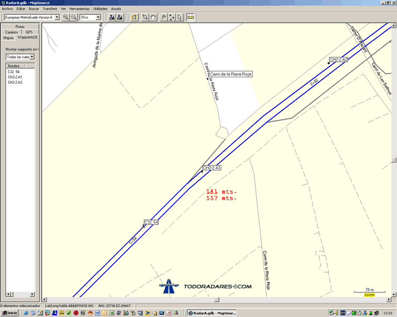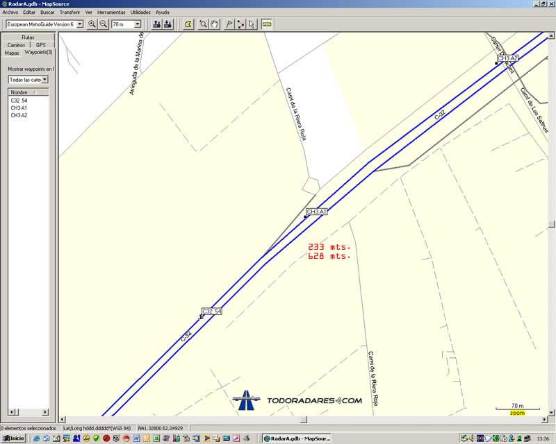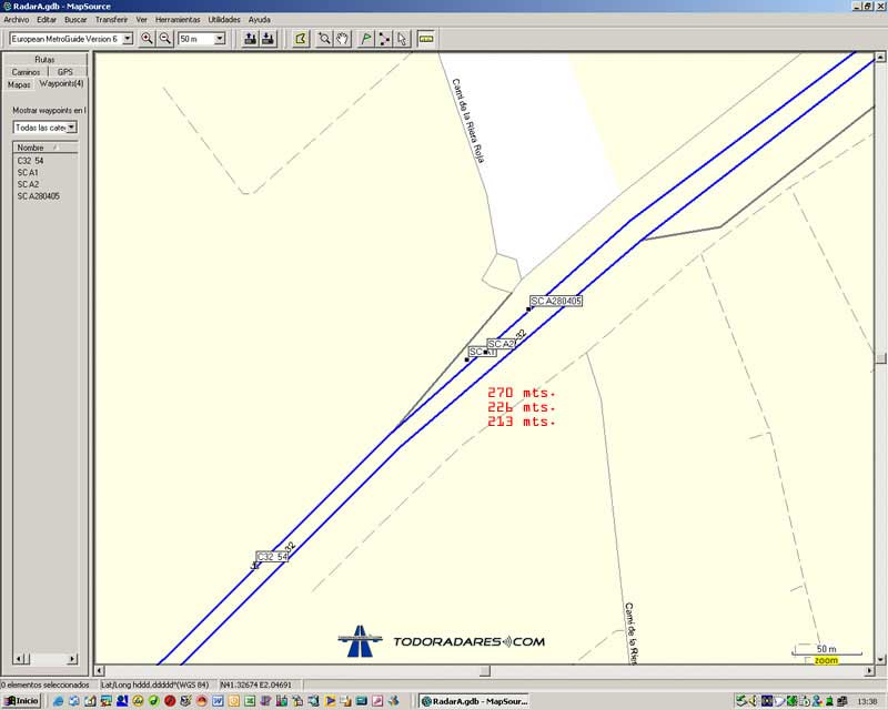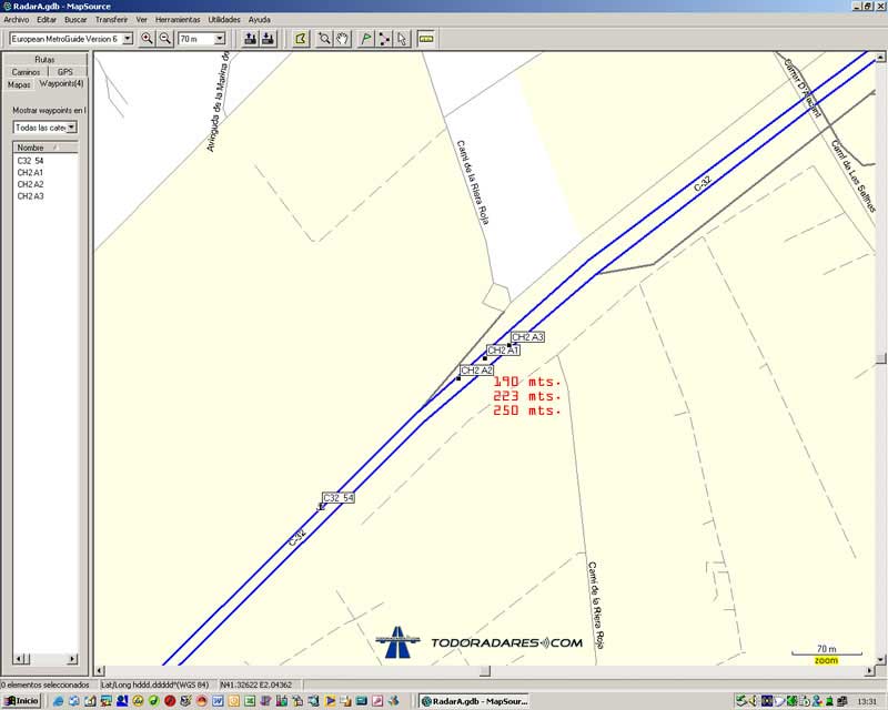 Este es el típico radar en línea mas o menos recta , quizás el de más fácil detección de todos los probados. Las distancias obtenidas son muy buenas en todos los casos sin distancias negativas en ningún caso. El método de obtención: Varias pasadas Non-Stop con cada cono.