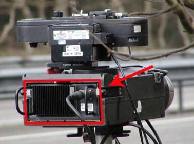 ![]() | ![]() | El flash mediante luz infrarroja presenta la ventaja de que su luz es practicamente invisible al ojo humano, por lo que el flash no es deslumbrante, ni alerta apenas a la presencia del radar a otros conductores, puesto que lo que apenas se evidencia es un leve destello anaranjado. |