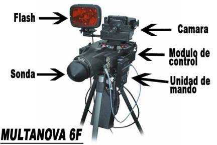 El multanova 6F se divide en 5 componentes: Antena, unidad de mando, módulo de control, flash y cámara fotográfica.