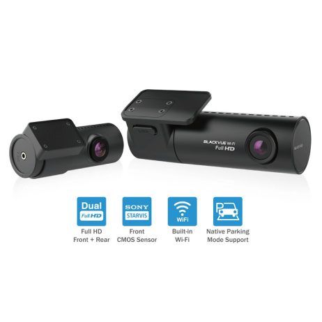 Cámara para coche Blackvue DR590X PLUS FHD doble (delantera y trasera) con sensor Sony STARVIS de alta luminosidad que permite grabar videos con muy poca luz (visión nocturna). Sensor de impacto y sensor de movimiento. Modo parking automático (grabación constante).Nuevo modelo versión X PLUS.